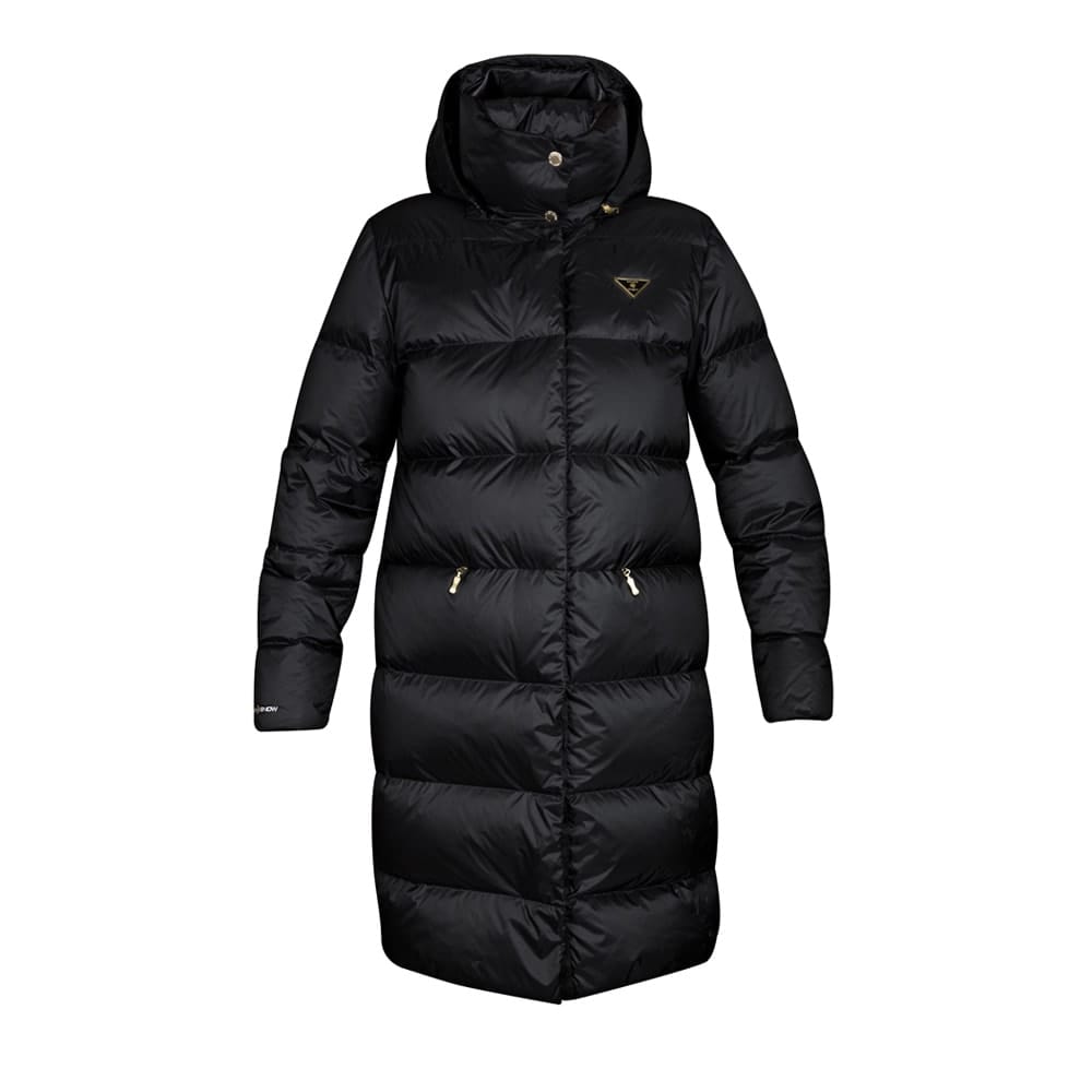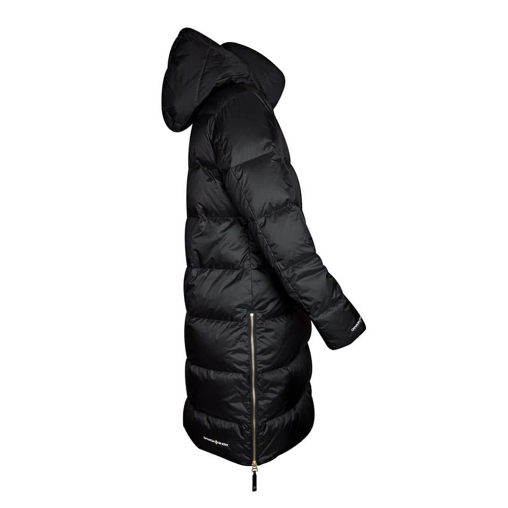 Canada Snow Sheila Long är en lång dunjacka för kyliga dagar. Tillverkad av polyester som har en vattenavvisande effekt. Jackan är varmfodrad och håller dig varm under kalla vinterdagar. Jackan har lyxiga guldiga detaljer, en avtagbar huva, dolda muddar och dragkedjor på sidorna för bästa passform. Perfekt för dig som vill hålla dig varm och stilfull i kallare väder.