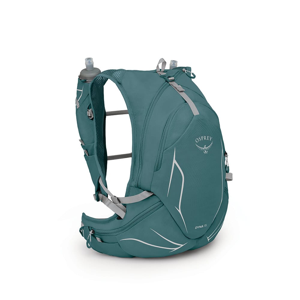Osprey Dyna 15 löparryggsäck är ett bra val för löpare som behöver en pålitlig lösning på sina träningspass eller långdistanslopp. Den ergonomiska designen erbjuder enkel åtkomst till snacks och vatten samt till utrustning via höftbältets fickor. Med två mjuka vattenflaskor Hydraulics (500 ml) och generöst förvaringsutrymme är Dyna 15 en pålitlig följeslagare till ditt nästa högintensiva träningspass.