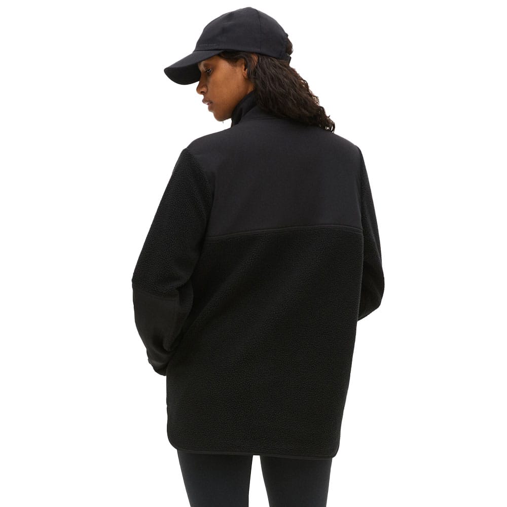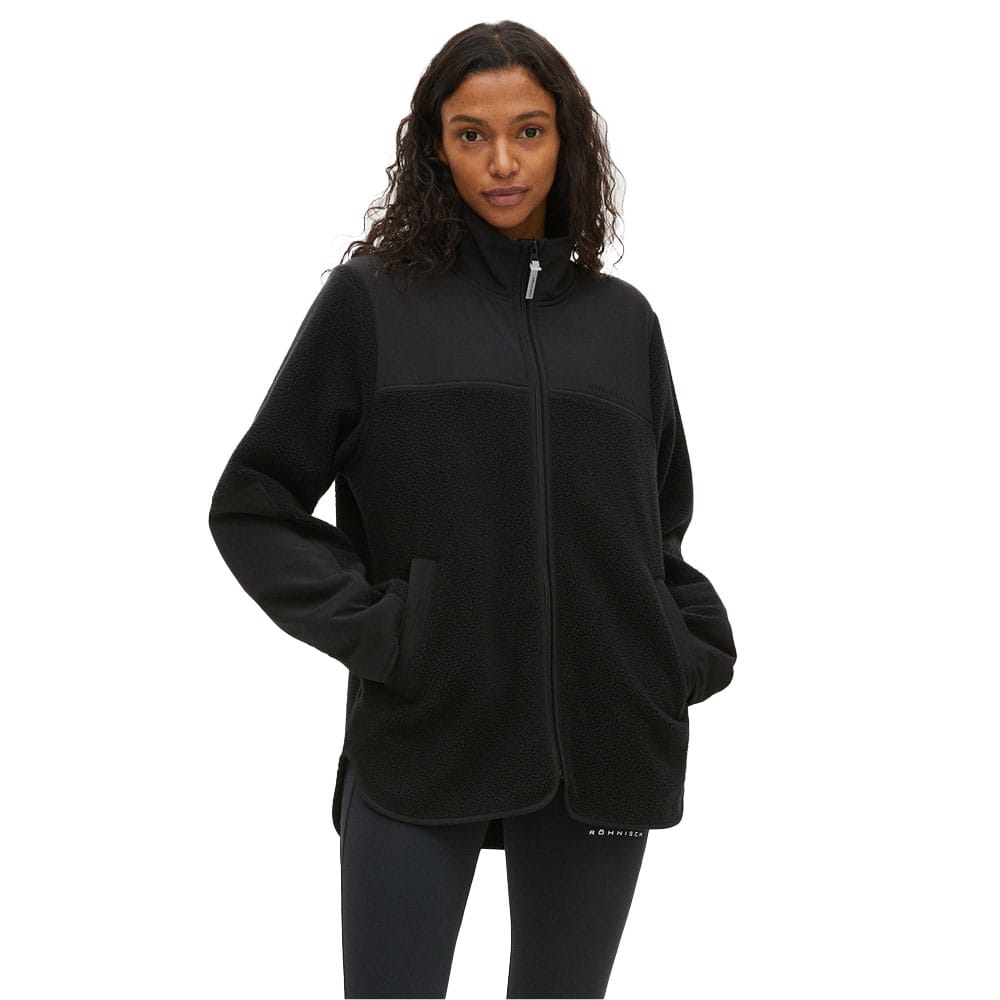 Röhnisch Phoebe Pile Jacket är en mångsidig fleecejacka av härlig teddyfleece. Polyestermaterialet är återvunnet till 70 % vilket gör det till ett bra val för miljön. Dessutom värmer det skönt! Hög krage och vindtäta infällningar gör den extra varm och god! Dessutom har jackan en lite längre fåll baktill. På framsidan sitter en dragkedja samt två framfickor med snygg Röhnisch-logga. Passformen är lös.