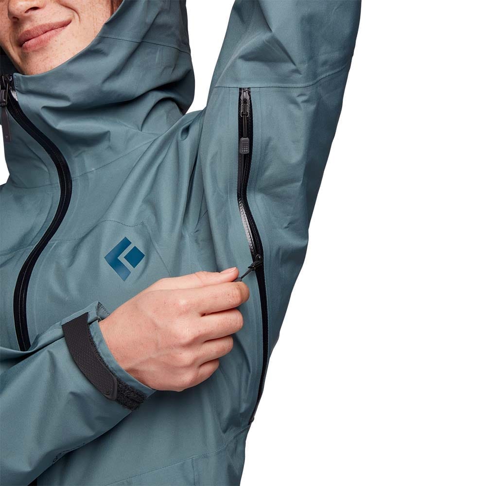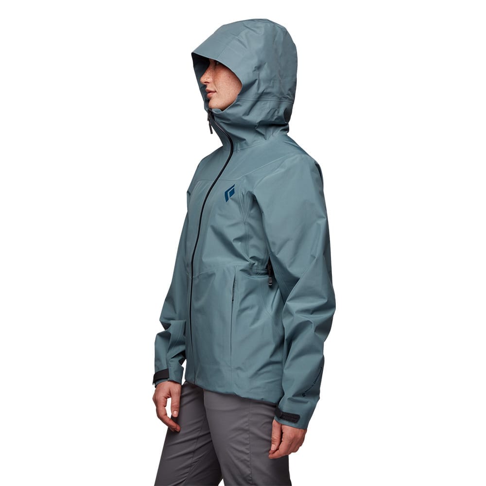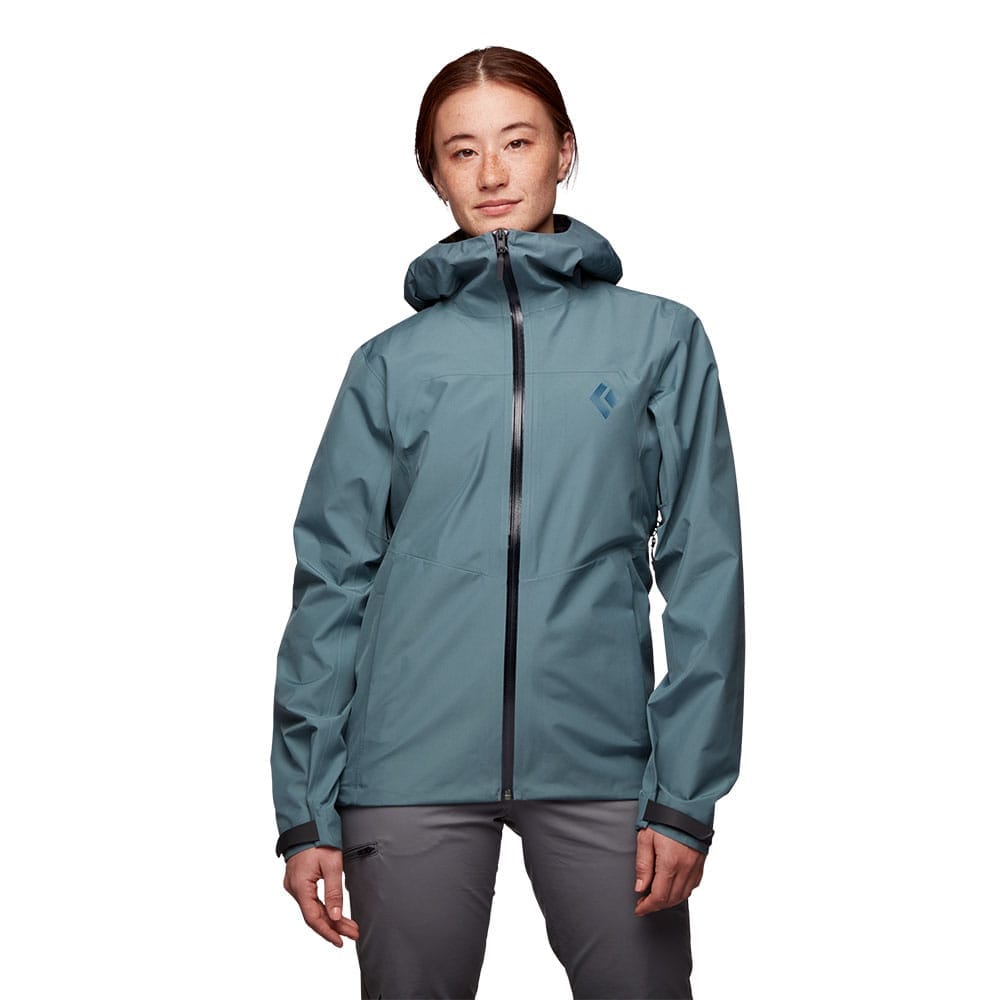 Liquid Point Shell från Black Diamond är en vädertålig skaljacka för dam som håller dig torr om vädret plötsligt slår om. Jackan är tillverkad av slitstark GORE-TEX Paclite med en slätvävd yta och en DWR-beläggning som ger ett oslagbart skydd mot regn såväl som vind.