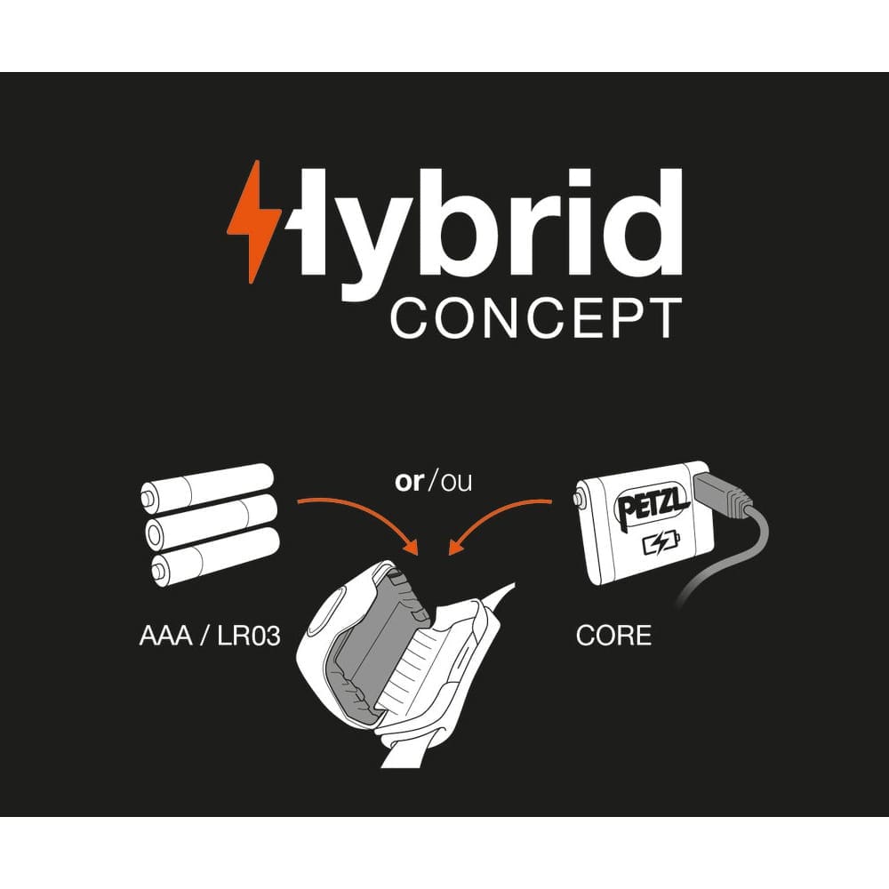 Zipka är utrustad med Petzl innovativa hybridteknologi. Det betyder att du dels kan använda pannlampan med de AAA-batterier som medföljer, men du kan också köpa till ett laddningsbart CORE-batteri separat.