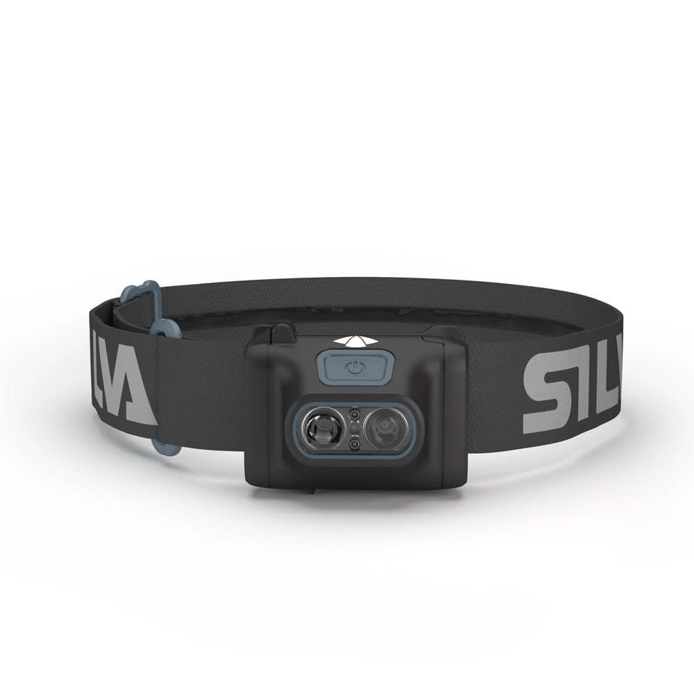 Lättanvänd och vattentålig pannlampa med Silva Intelligent Light, rött LED-ljus och bekvämt huvudband. Uppladdningsbart hybridbatteri medföljer.