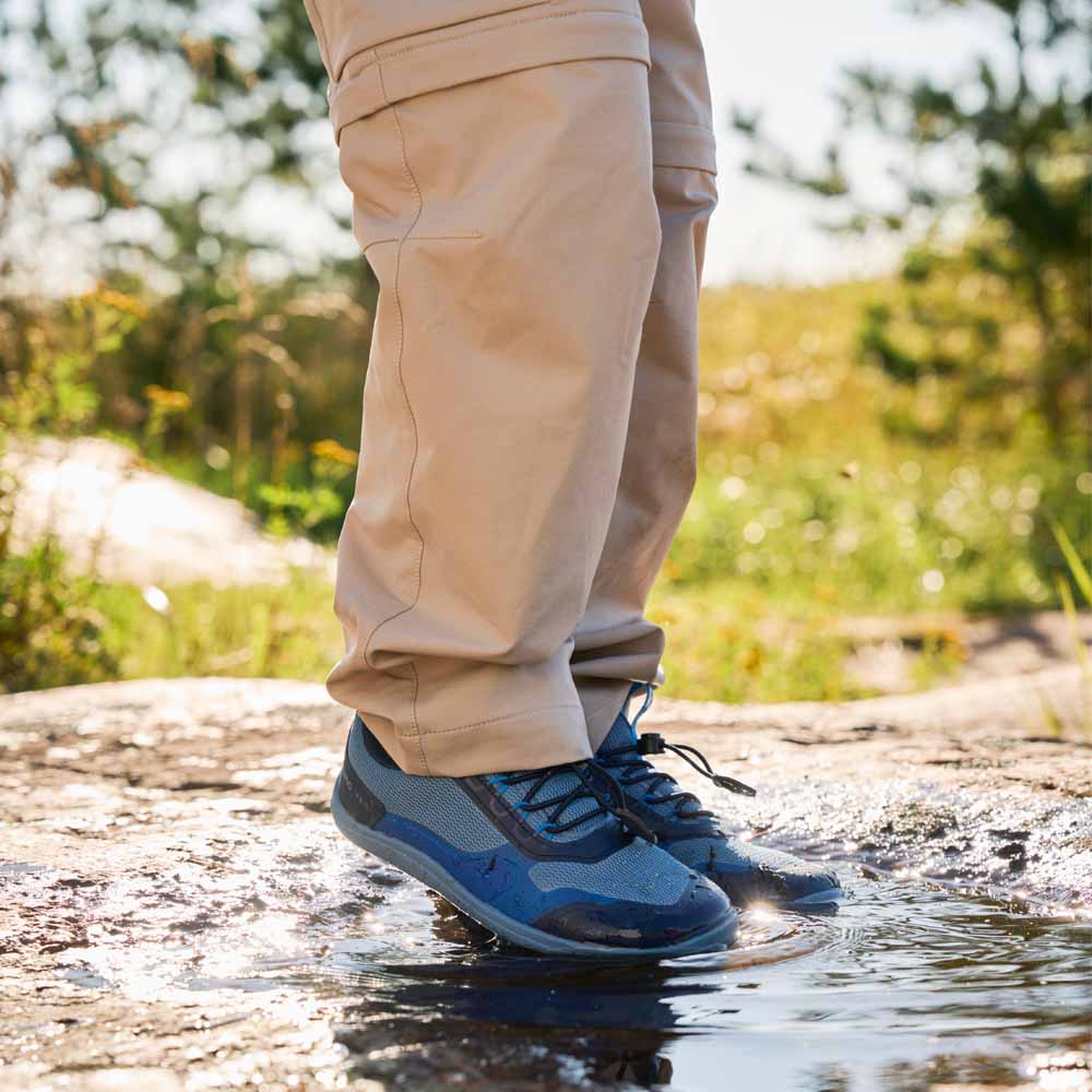 Reima Tallustelu barfotaskor är idealiska för aktiva barn som älskar att leka utomhus, oavsett väder. Dessa vädertåliga sneakers är lätta att ta på, har elastisk snörning och ger en naturlig fotposition med noll drop. Den breda lästen och flexibla yttersulan i gummi säkerställer komfort och grepp vid lek i små vattenpölar.