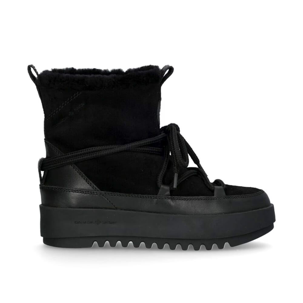 - Skön insida: Kängorna är fodrade med mjuk fårskinnspäls och har en inläggssula i lana, en typ av ulltextil, för att erbjuda ytterligare isolering och komfort.