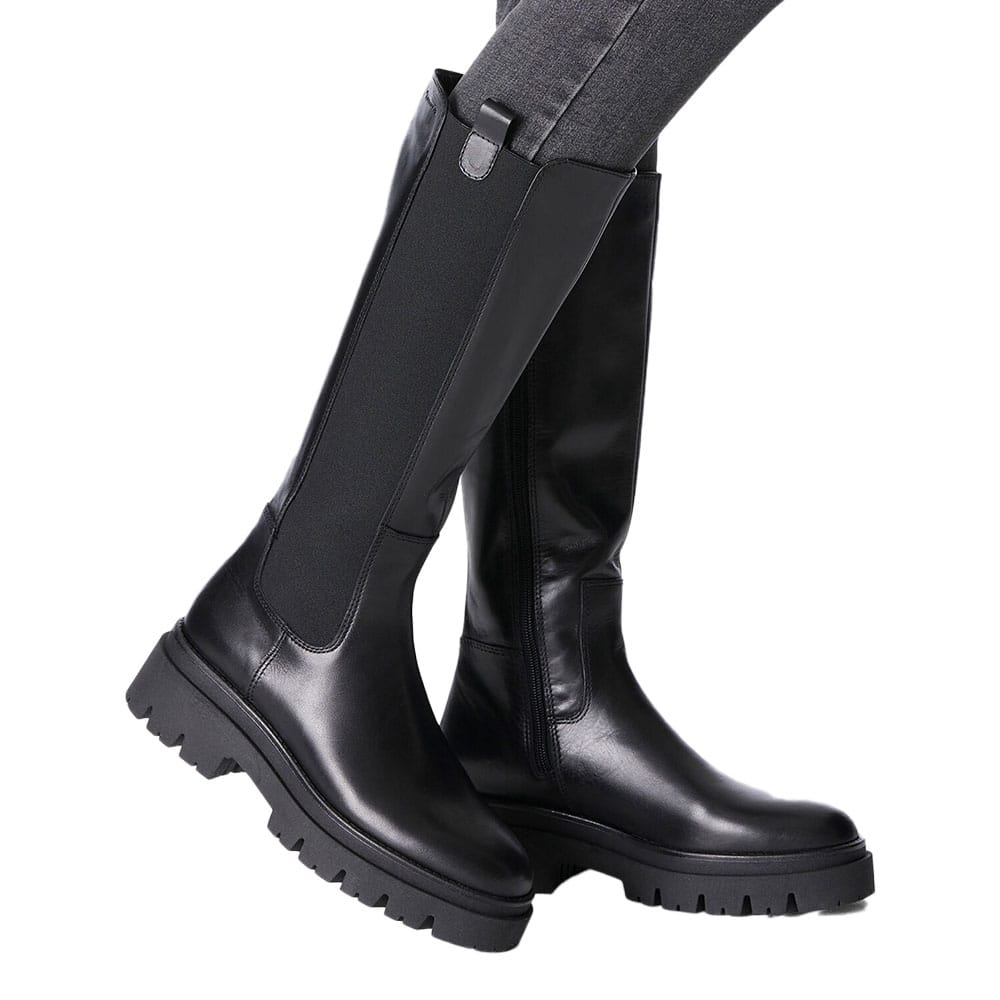 Eleganta Tamaris 1-25608-41 med 35 cm skaft i äkta läder, bekväm textilinnersula och praktisk dragkedja. Med en 50 mm blockklack är de idealiska för både vardag och fest. Den runda tåformen och syntetyttersulan ger en stilren look och extra komfort. Perfekt för dig som söker stil och komfort i ett.