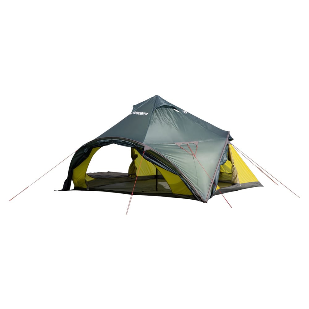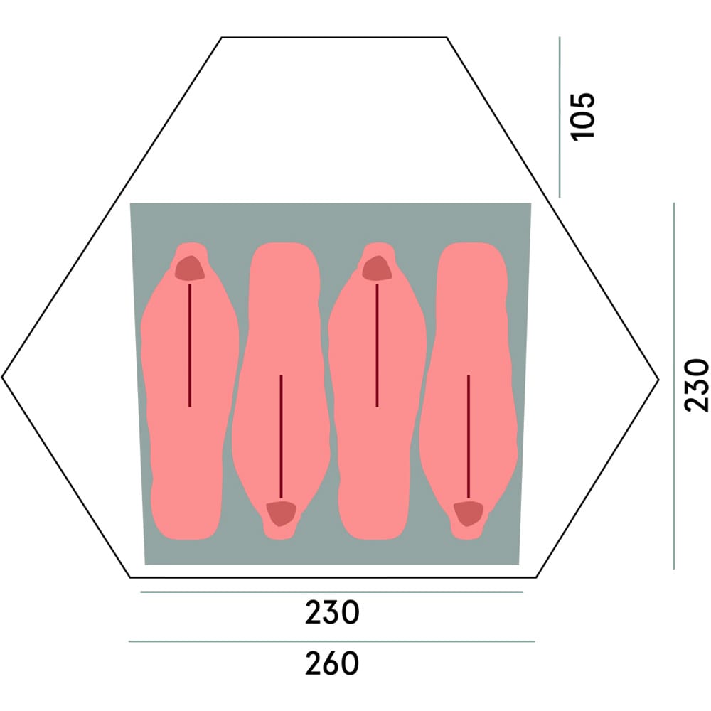 - Rymligt och funktionellt: Med en sovplats på 5.3 m² och en totalarea på 9.5 m² samt tre vestibuler och tre ingångar, erbjuder tältet gott om utrymme och enkel åtkomst för upp till fyra personer.